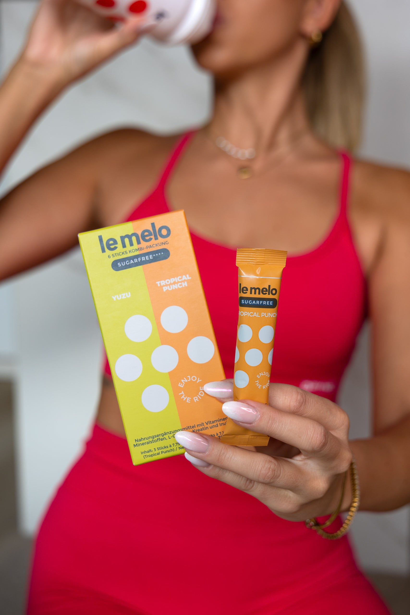 → le melo ist ein hochwertiges Hydration-Getränk für Sportler:innen und aktive Menschen. Jeder Stick liefert über 1000mg Elektrolyte sowie 13+ funktionale Nährstoffe – ohne Zuckerzusatz und mit natürlicher Inspiration.