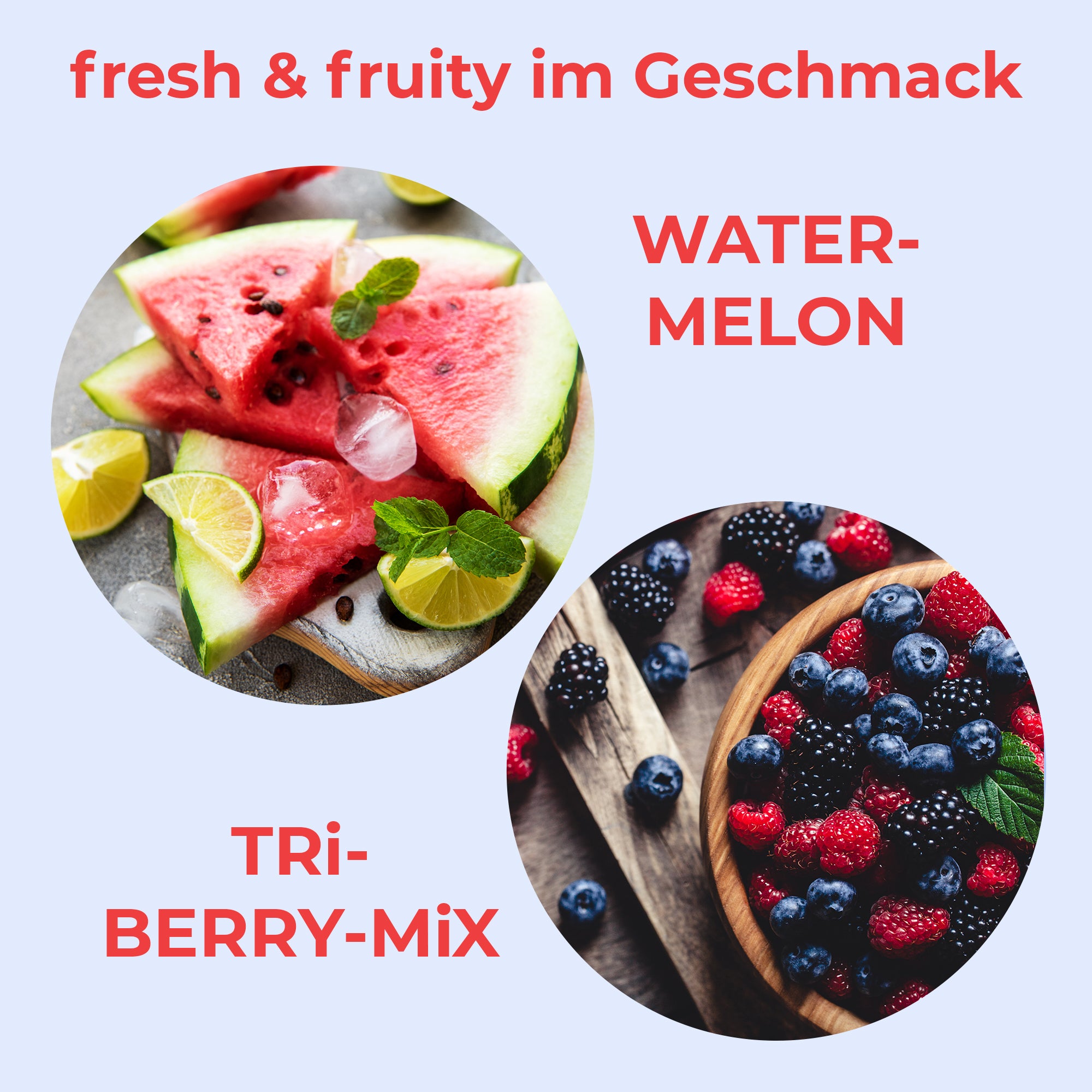 Geschmack: Erfrischende Wassermelone und fruchtiger Beeren-Mix